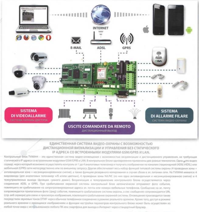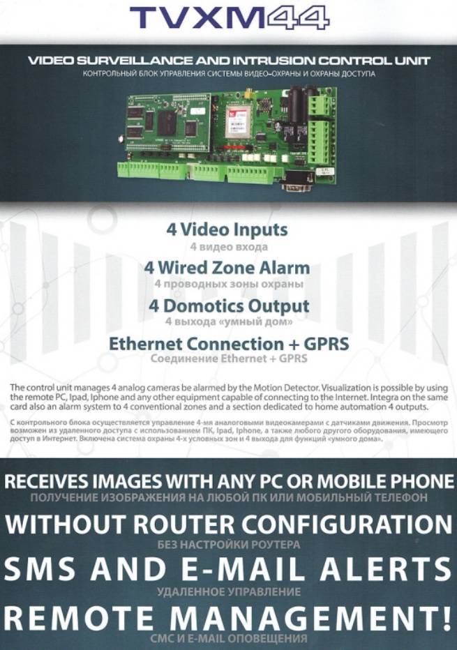 Техническое решение построено на трех системных независимых блоков сигнализационной автоматики и видео передающих устройств, для интенсификации и передачу информации о посягающих лицах при реагировании и на основной пуль контроля и управления защиты.
